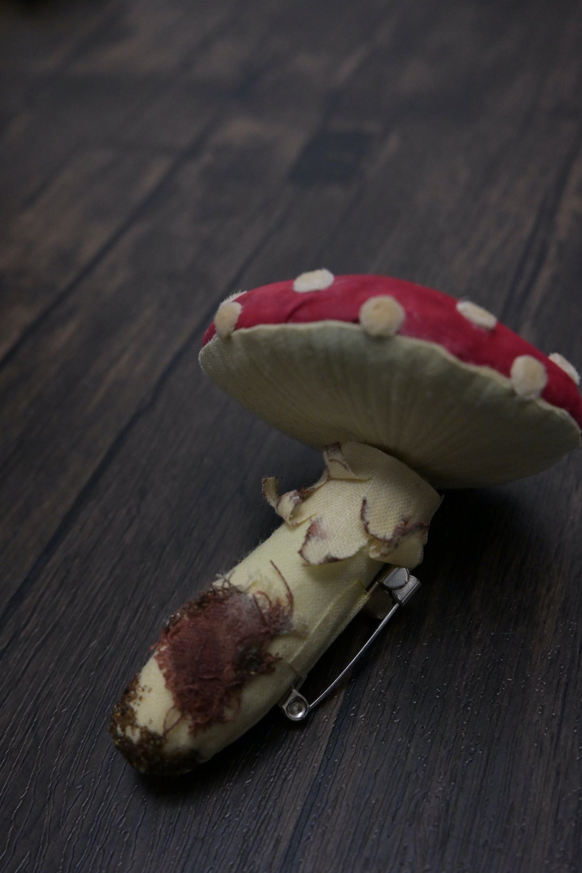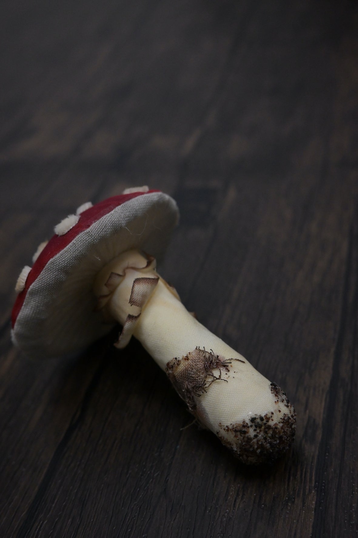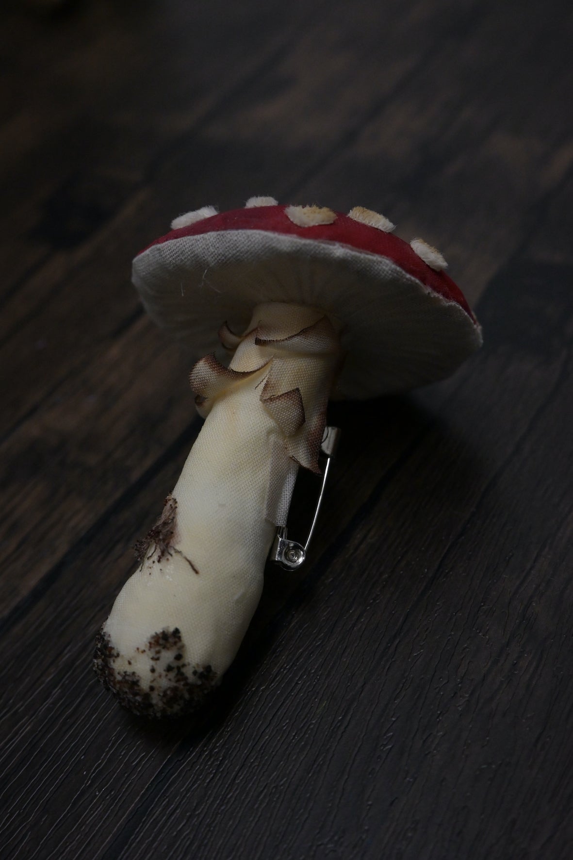 - 啡白色菇柄和菌環:用木棉布製成,表現出比菇蓋較粗糙的觸感