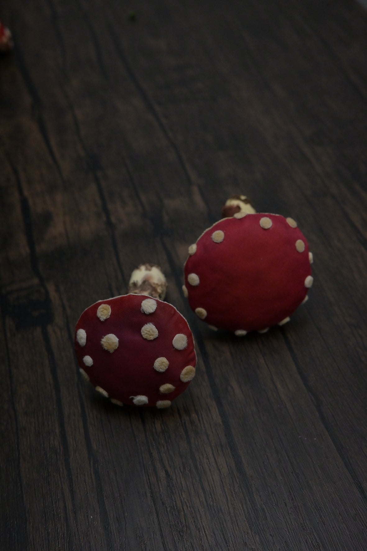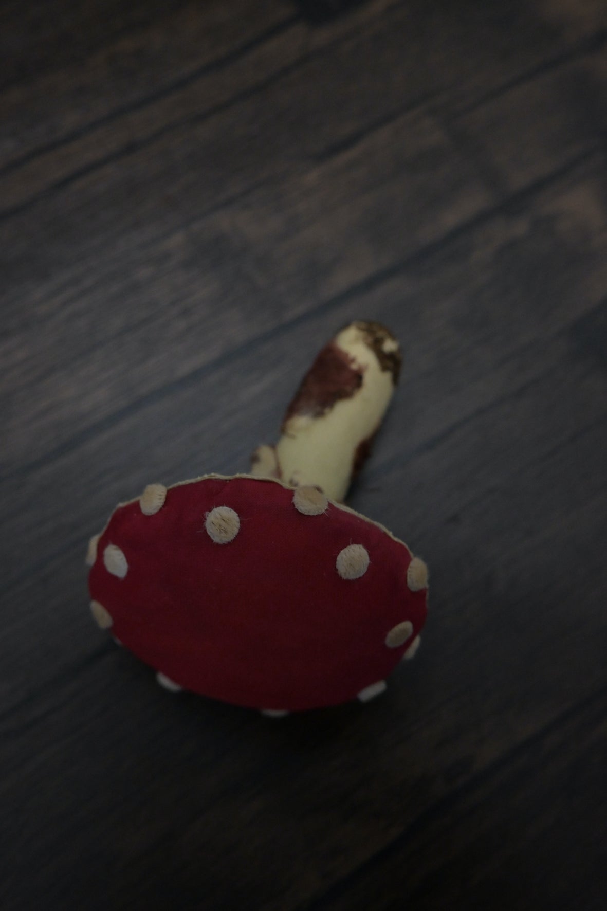 - 菇蓋上的顆粒狀鱗片:用厚毛絨布製成,令整個菇菇更可愛