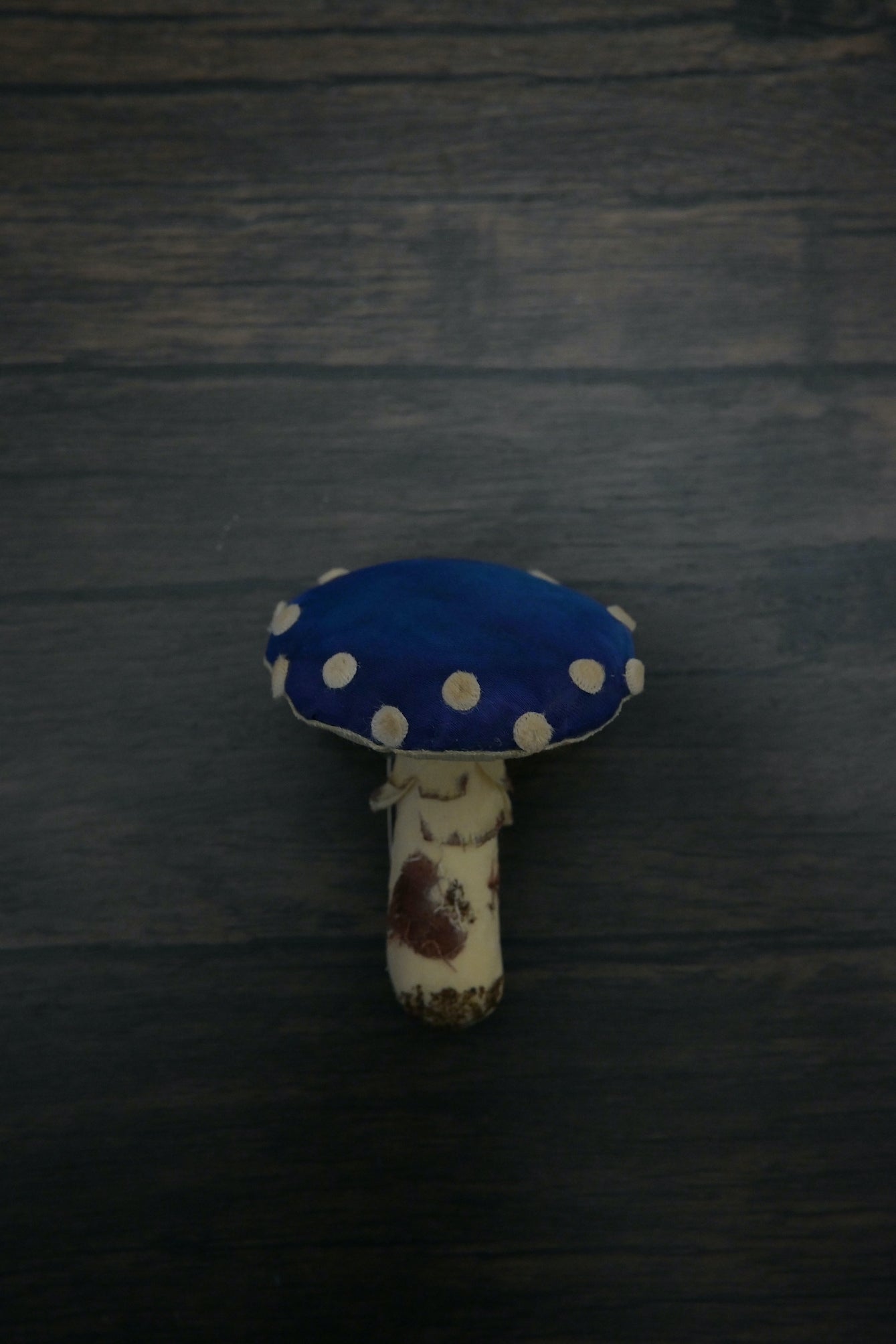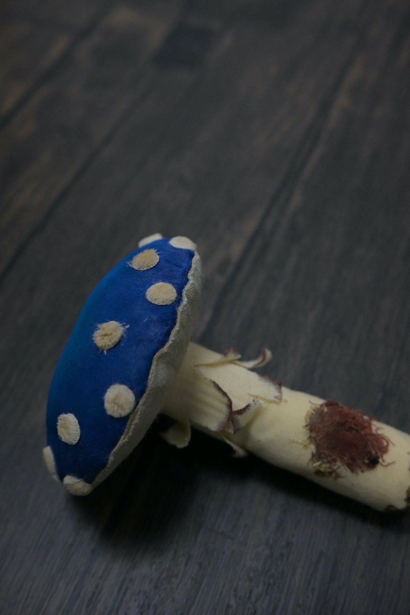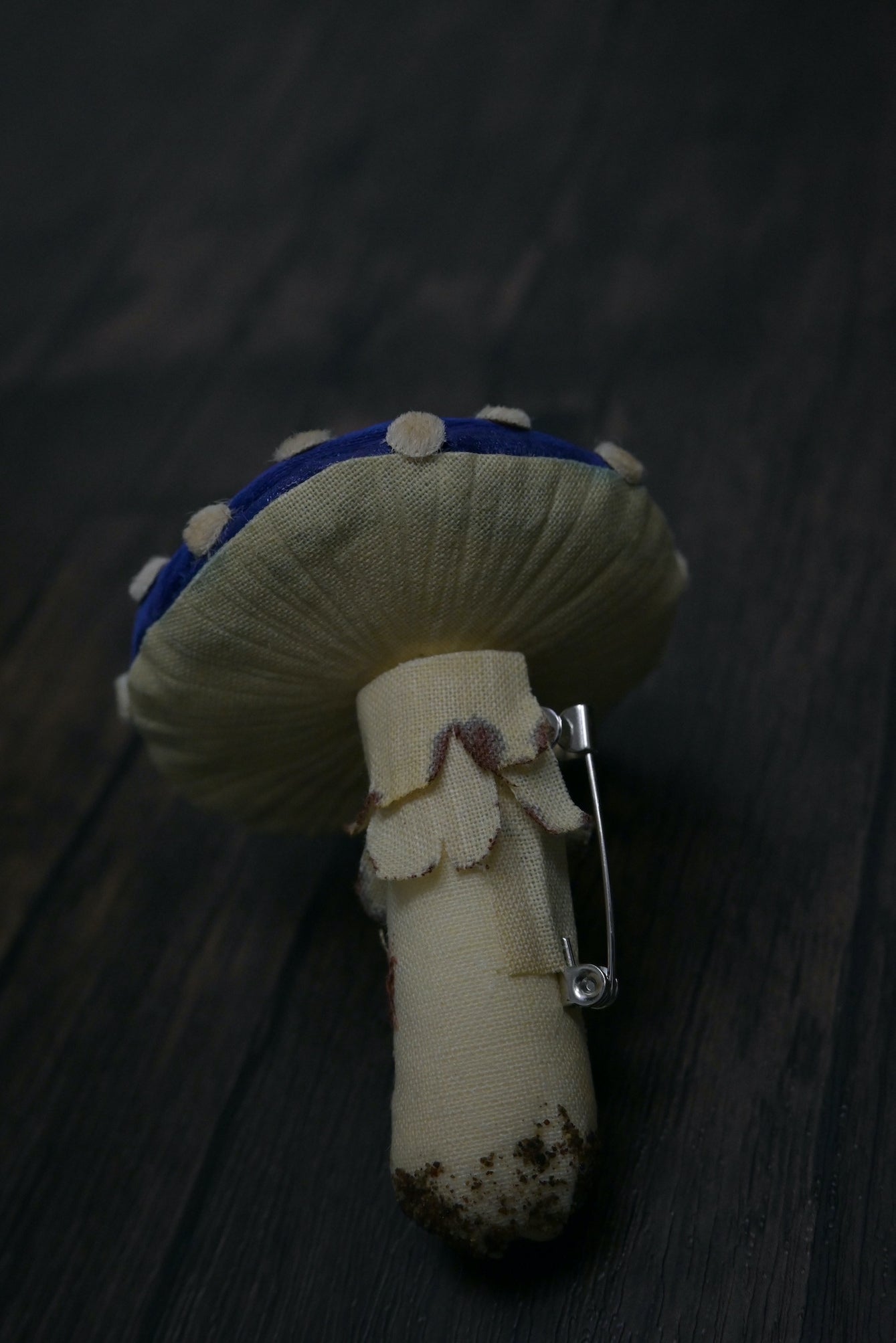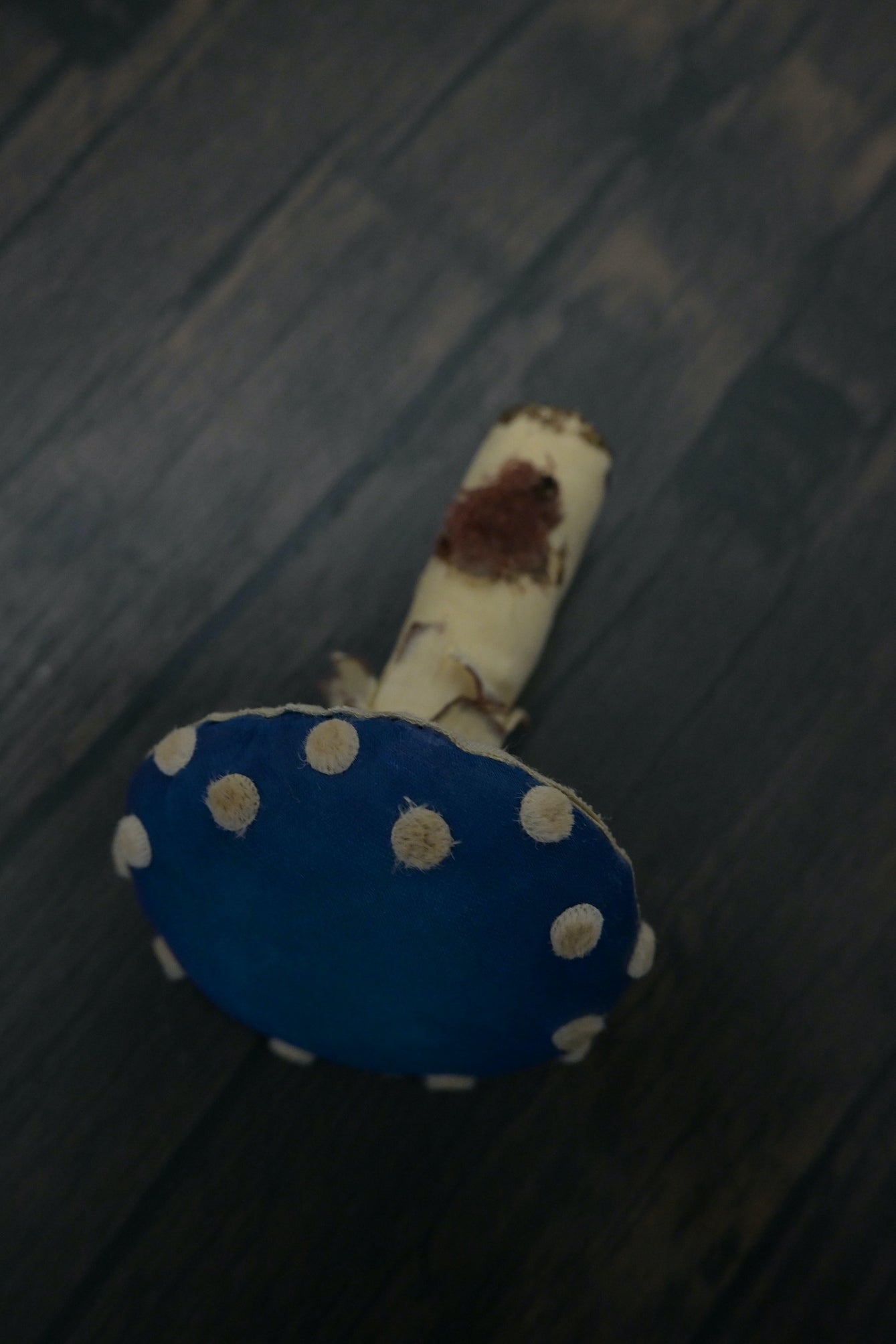 - 藍色菇蓋:用光滑的啞光緞製成,模仿其光滑的質感