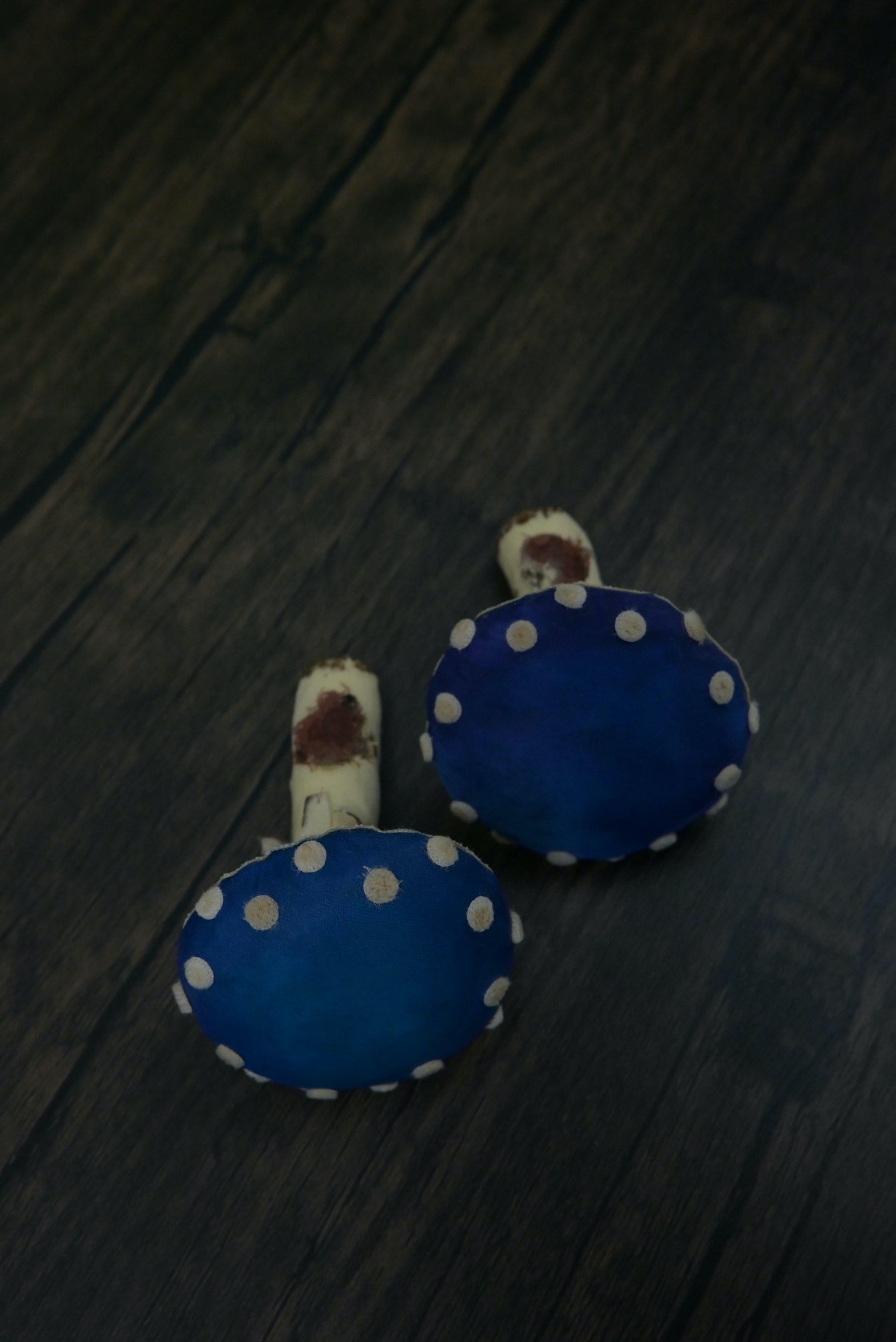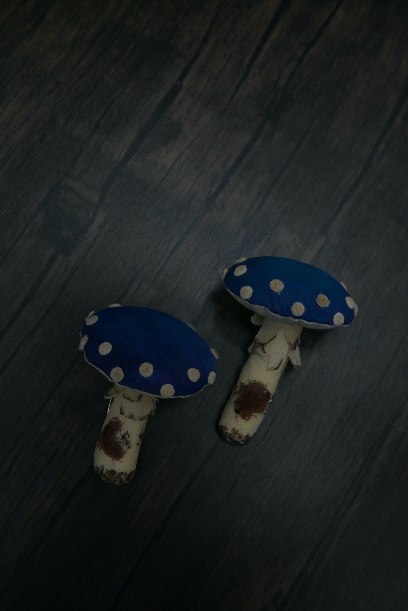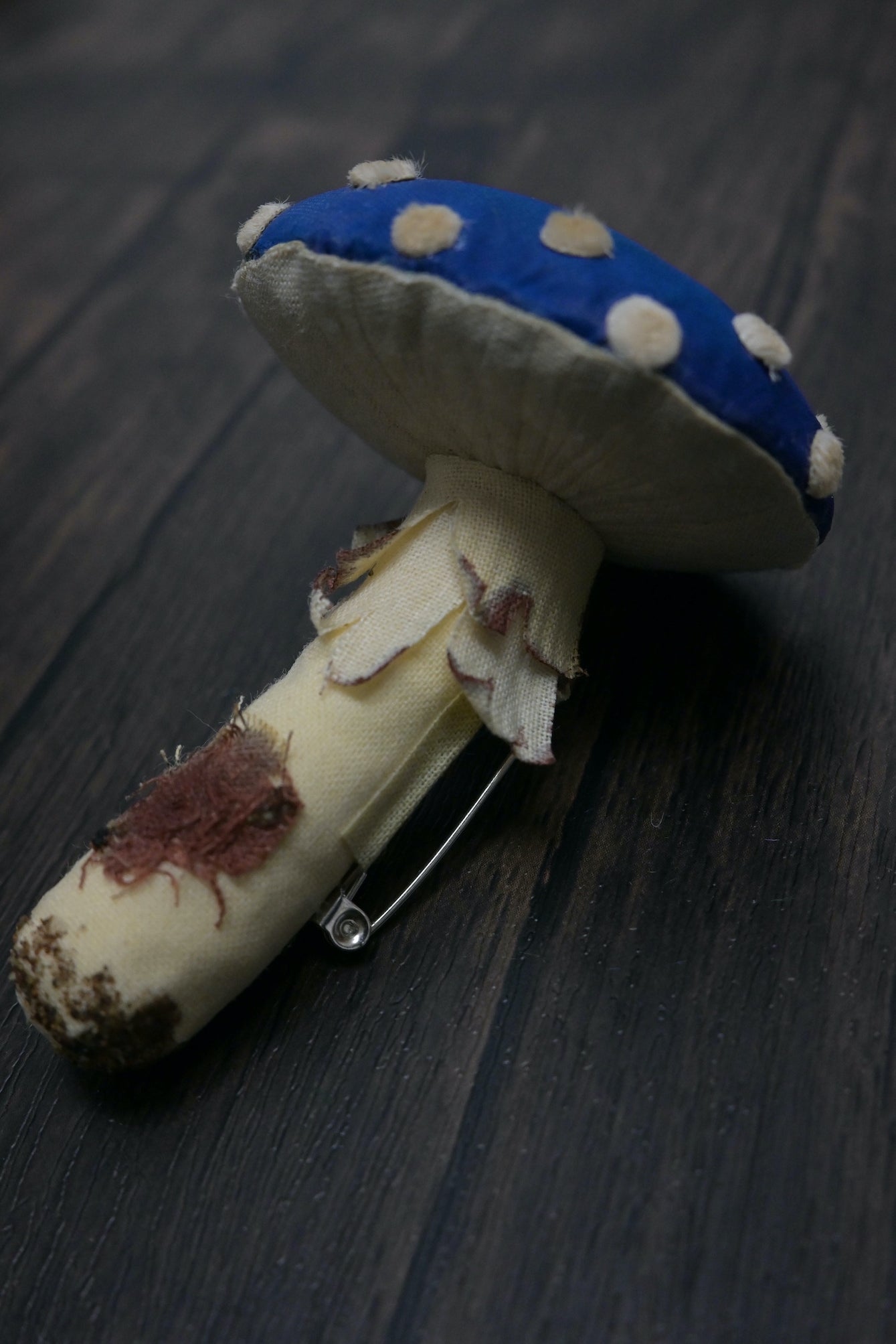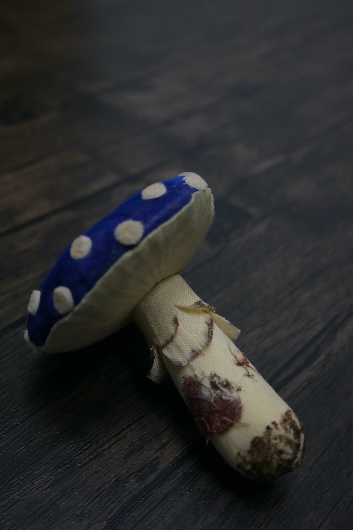 - 藍色菇蓋:用光滑的啞光緞製成,模仿其光滑的質感