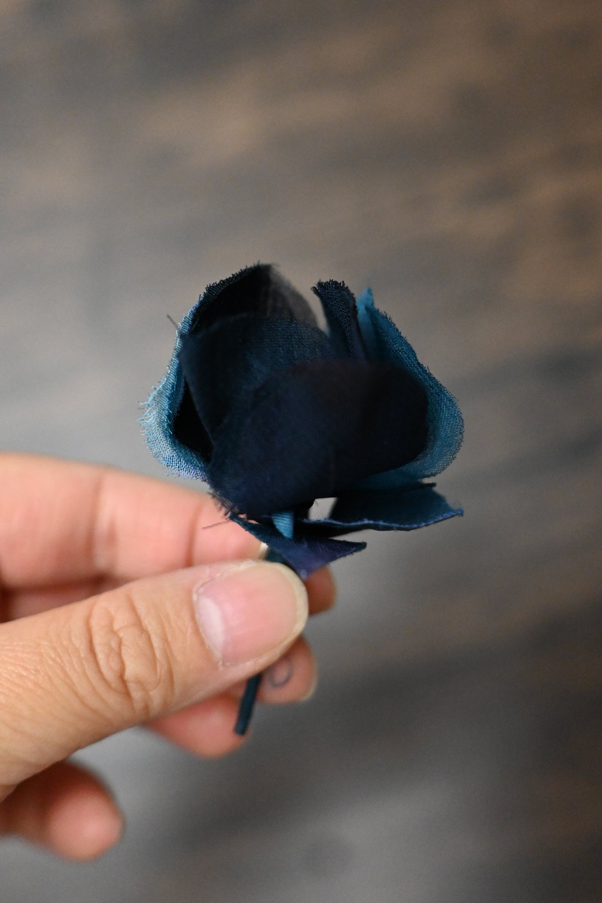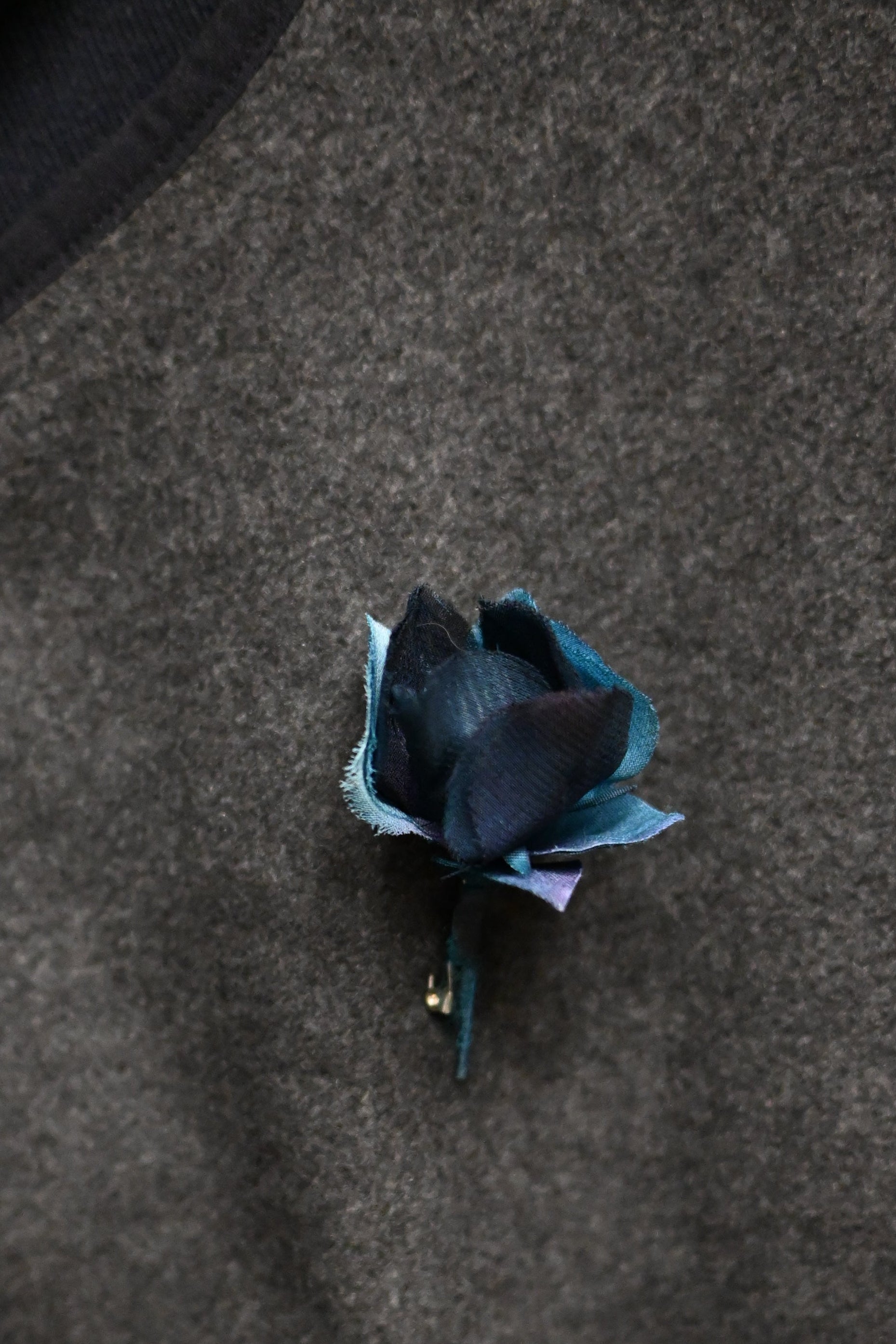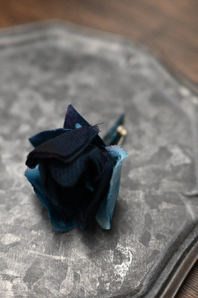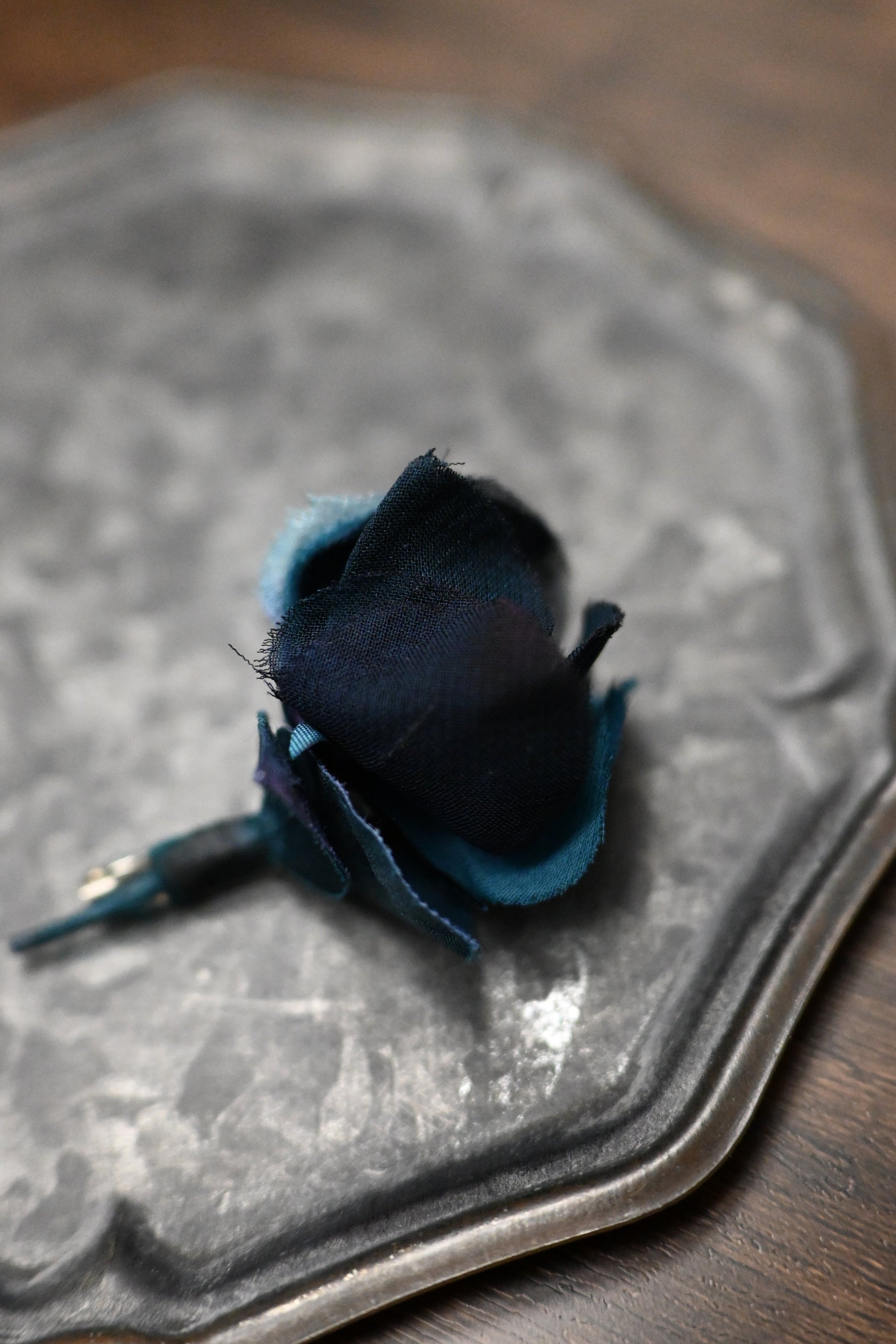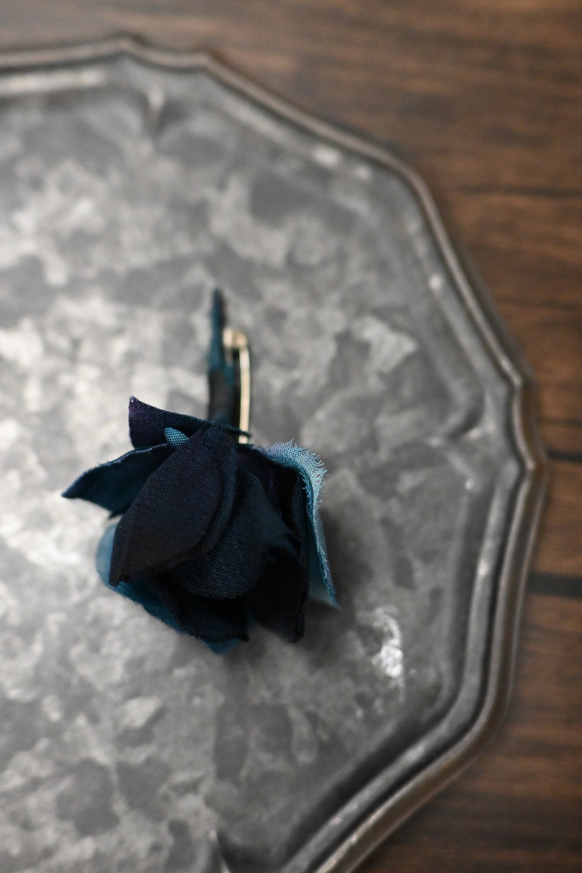 琉璃色系。 洋桔梗心口針尺寸|約 W6.7 x H5.3 x D3 厘米布料|天鵝絨、木棉布、薄絹布 (均為日本製造)